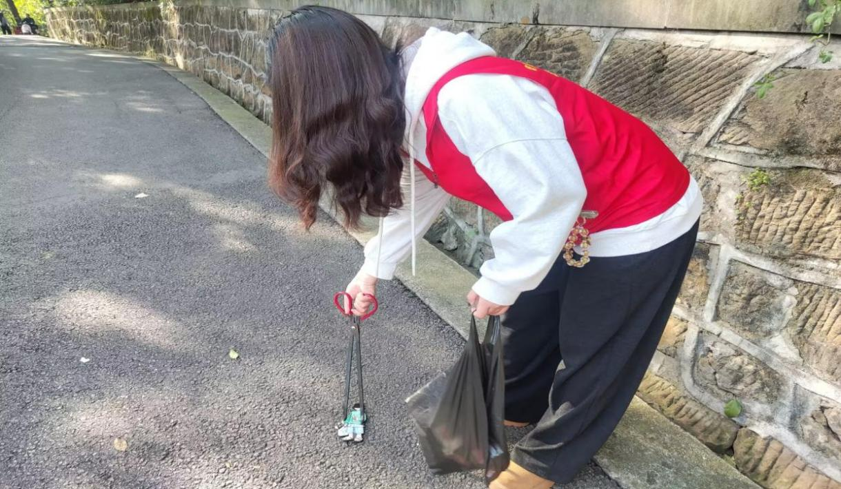 活动现场,志愿者们依据分工,对公园多个区域展开系统性清扫。同学们仔细清理了绿化带内草丛、石缝中的隐藏垃圾,并对登山步道两侧的烟头、塑料瓶、食品包装袋等废弃物进行了重点清除。