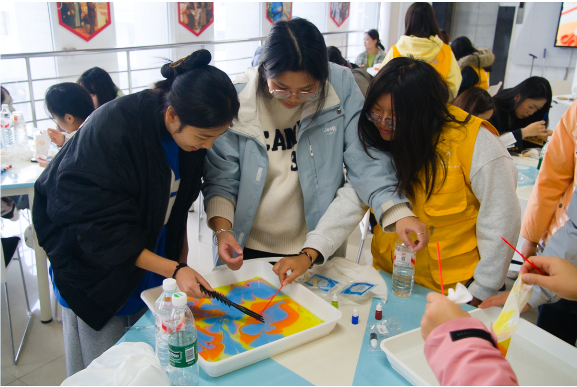 活动现场设置了彩贝杯垫DIY、丝巾水拓画DIY、手绘玻璃杯DIY三大主题工坊,参与者通过亲手制作,将基础材料逐步转化为具有个人特色的手工作品。